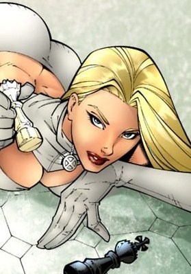 7. Способности: 1). Обладает стандартным набором телепатических способностей, без каких-либо оговорок или слабостей.Стирание памяти, выяснение чужого подсознания и так далее - её конёк.2). Может обращаться в иной химико-физический состав. Как Колосс обращается в сталь, Эмма может обращаться в близкое по свойствам к алмазу вещество.
